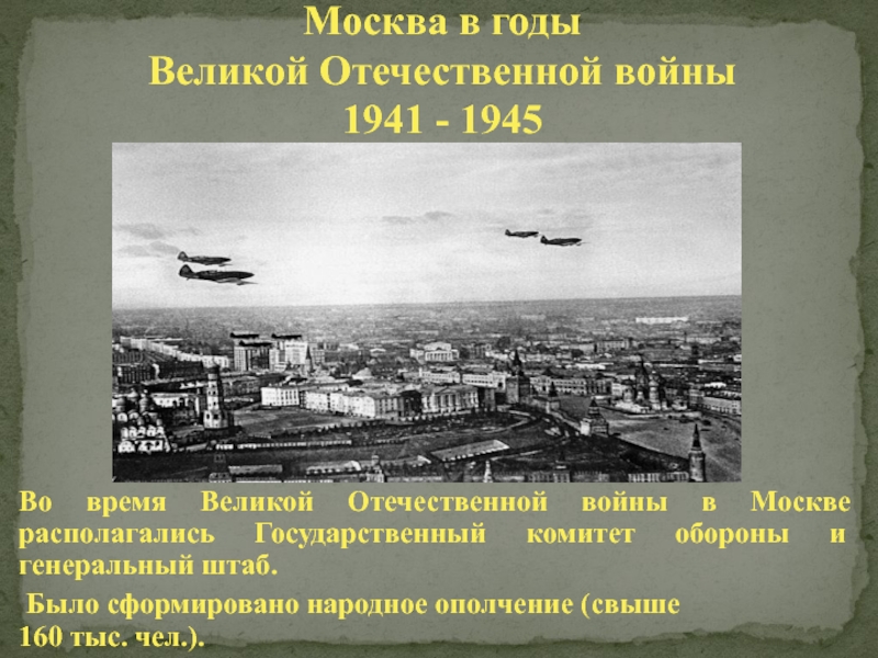 войны в Москве располагались Государственный комитет обороны и генеральный штаб.