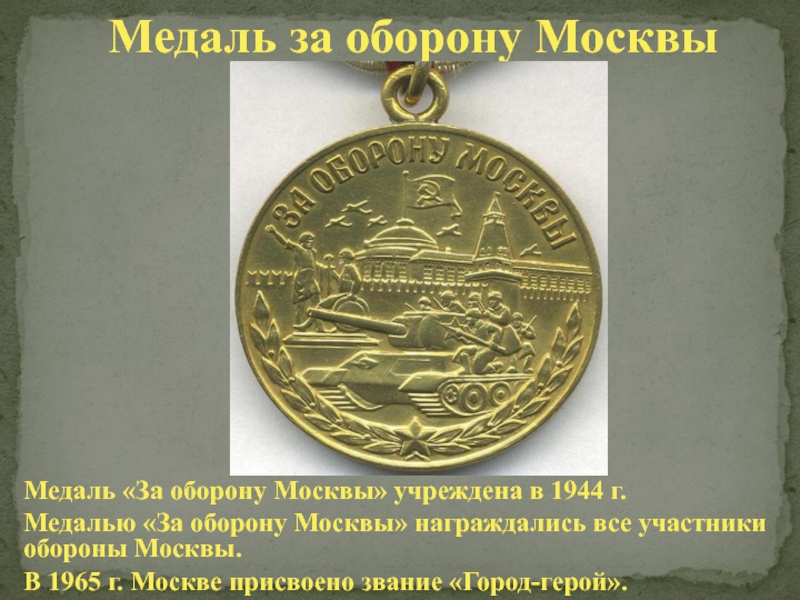 Медаль «За оборону Москвы» учреждена в 1944 г.