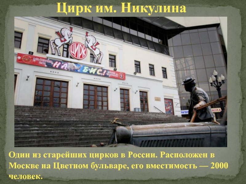 Слайд 42Один из старейших цирков в России. Расположен в Москве на Цветном
