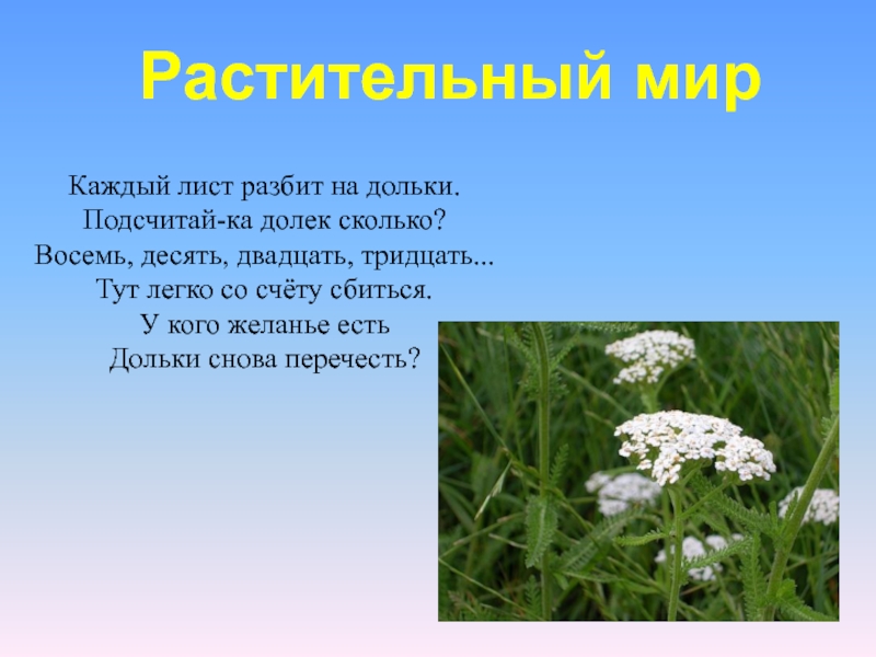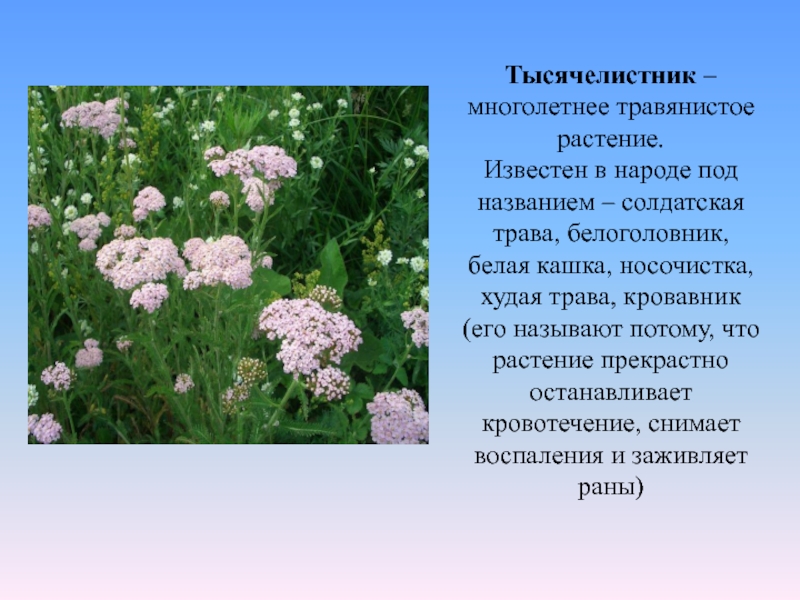 Слайд 16Тысячелистник – многолетнее травянистое растение.