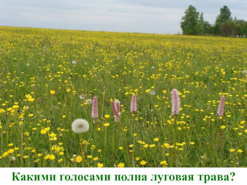 Слайд 3Какими голосами полна луговая трава?