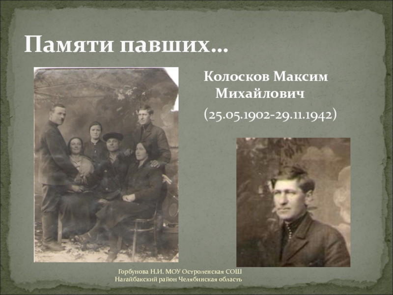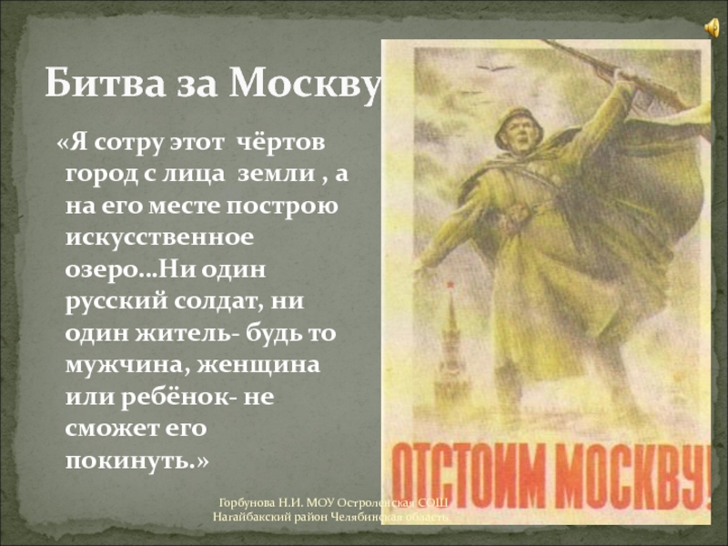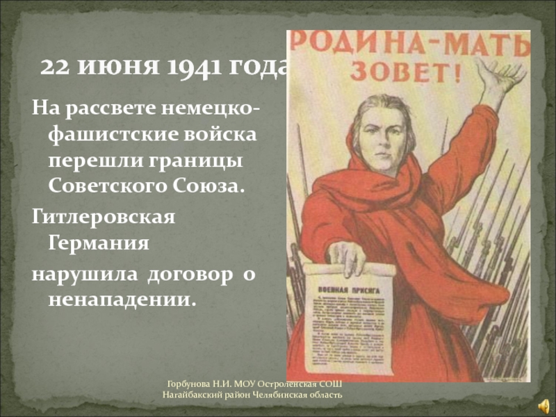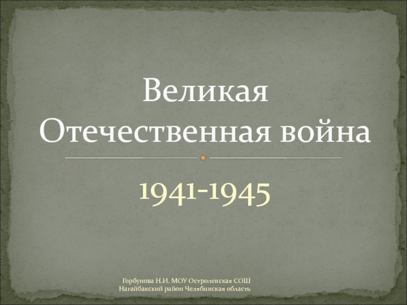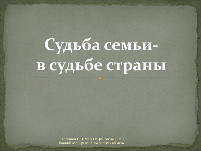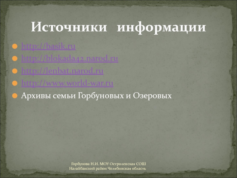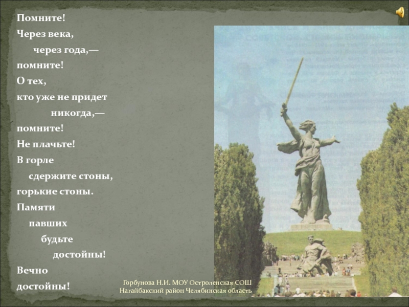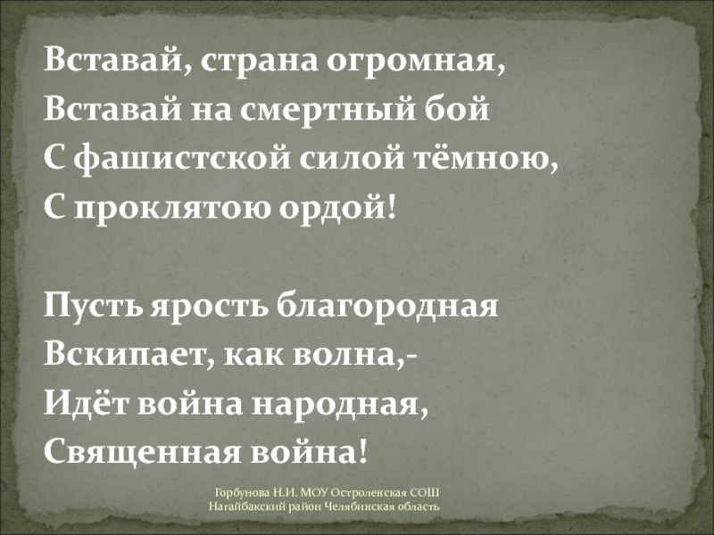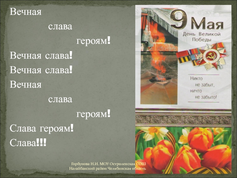 Горбунова Н.И. МОУ Остроленская СОШ Нагайбакский район Челябинская область