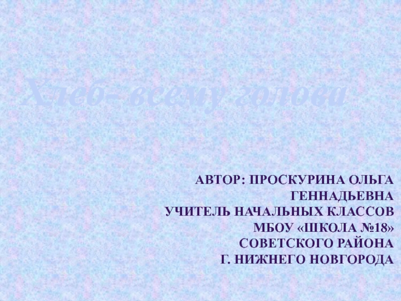 Хлеб- всему головаАвтор: Проскурина Ольга Геннадьевнаучитель начальных классов МБОУ «Школа №18» Советского района г. Нижнего Новгорода