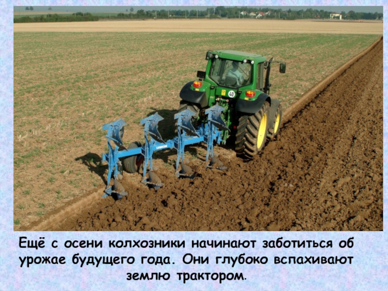Слайд 5Ещё с осени колхозники начинают заботиться об урожае будущего года. Они