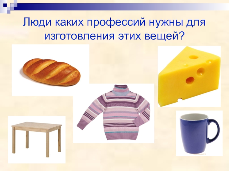 Слайд 2Люди каких профессий нужны для изготовления этих вещей?