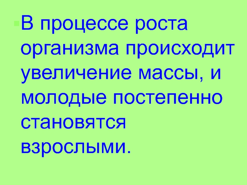 Слайд 6В процессе роста организма происходит увеличение массы, и молодые постепенно становятся
