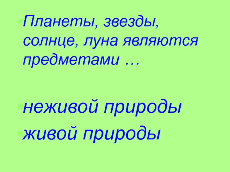 Планеты, звезды, солнце, луна являются предметами …неживой природыживой природы