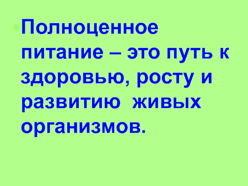 Слайд 9Полноценное питание – это путь к здоровью, росту и развитию живых