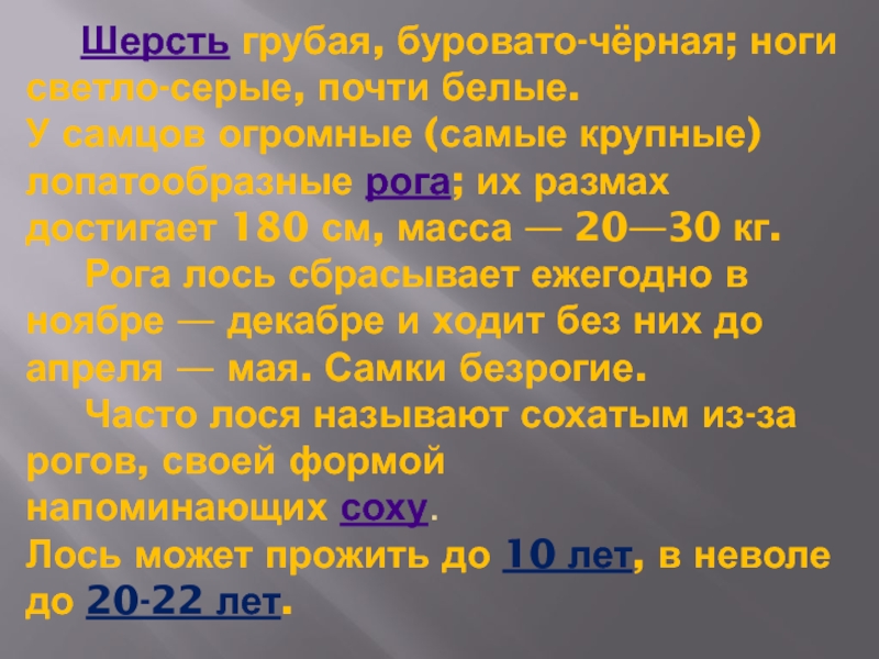 Слайд 25 Шерсть грубая, буровато-чёрная; ноги светло-серые, почти белые.