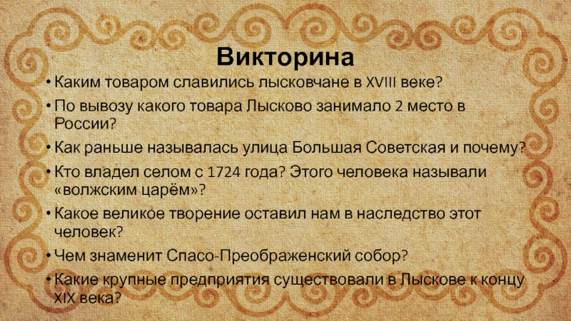 Слайд 18Лысково характеризуется как крупное торгово – промышленное село. В начале XVII