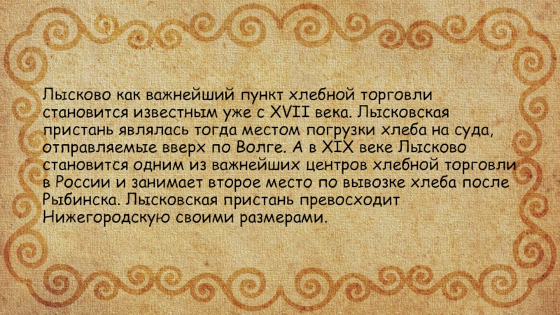 Слайд 24Лысково как важнейший пункт хлебной торговли становится известным уже с XVII