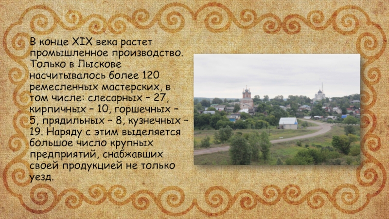 Слайд 32В конце XIX века растет промышленное производство. Только в Лыскове насчитывалось