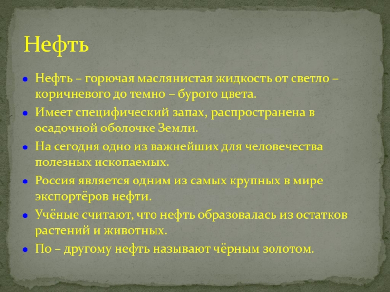 Нефть – горючая маслянистая жидкость от светло – коричневого до темно