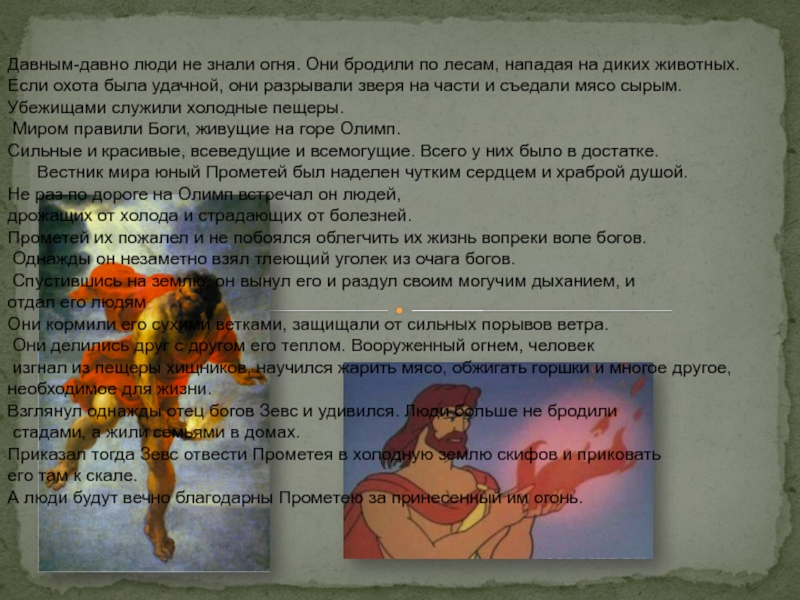 Слайд 6Давным-давно люди не знали огня. Они бродили по лесам, нападая на