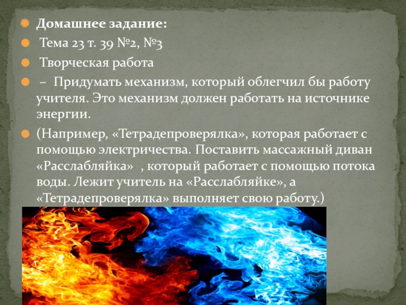 Придумать механизм, который облегчил бы работу учителя. Это механизм должен работать на источнике энергии.
