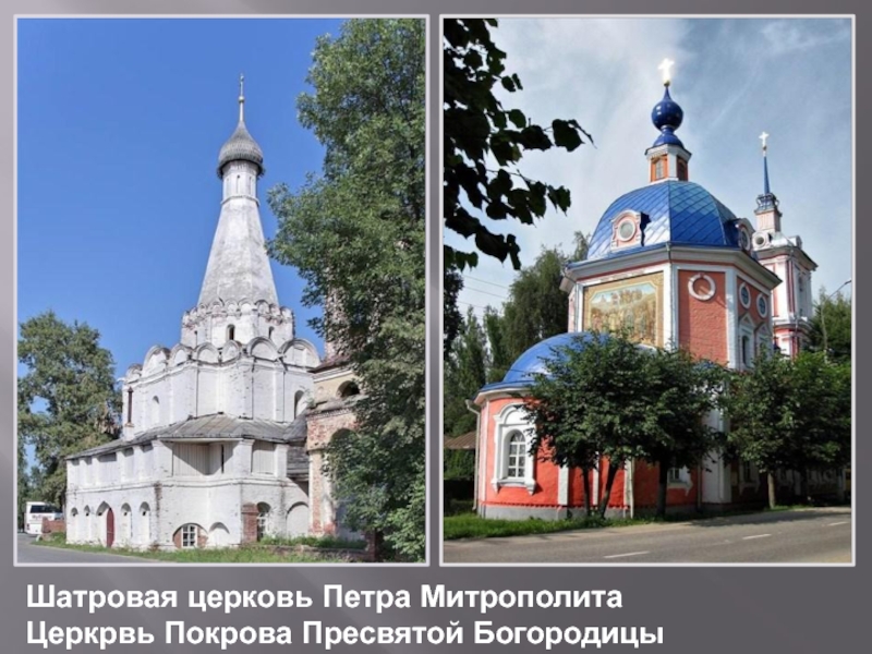 Слайд 16Шатровая церковь Петра Митрополита Церкрвь Покрова Пресвятой Богородицы