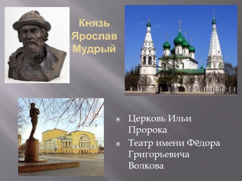 Князь Ярослав МудрыйЦерковь Ильи ПророкаТеатр имени Фёдора Григорьевича Волкова