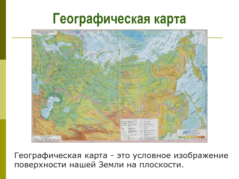 А условное изображение поверхности Земли на плоскости называют географической картой.