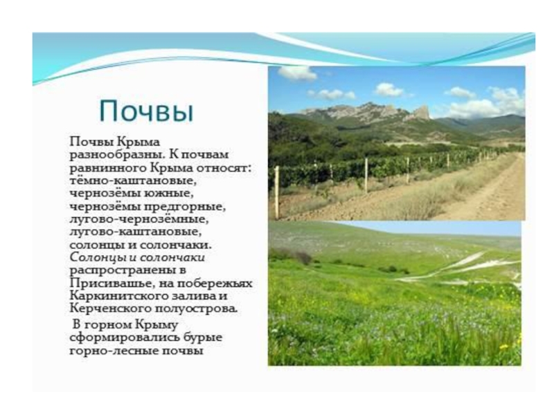 и солончаки, бурые горно-лесные, коричневые и горно-луговые почвы.