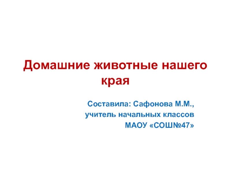 Домашние животные нашего краяСоставила: Сафонова М.М.,учитель начальных классов МАОУ «СОШ№47»