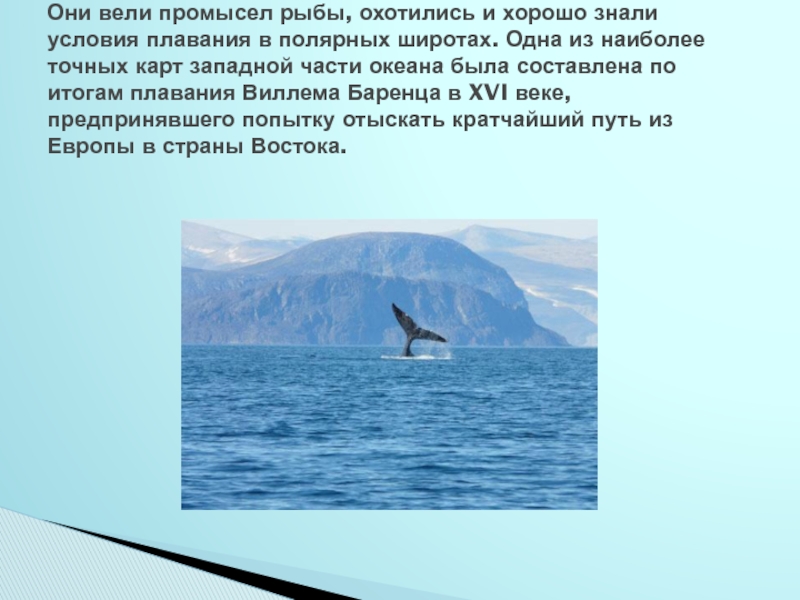 Слайд 4Они вели промысел рыбы, охотились и хорошо знали условия плавания в