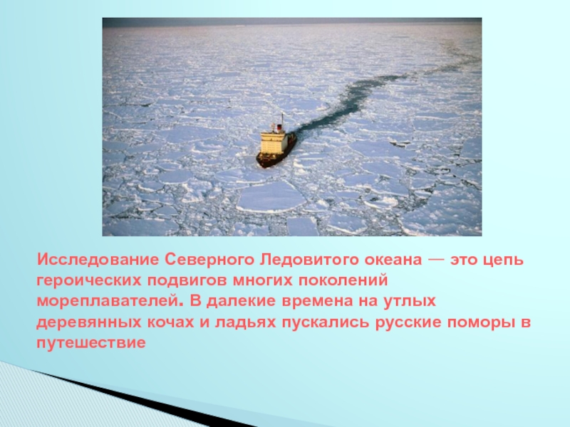 Слайд 3Исследование Северного Ледовитого океана — это цепь героических подвигов многих поколений