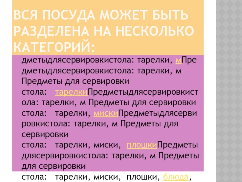 ВСЯ ПОСУДА МОЖЕТ БЫТЬ РАЗДЕЛЕНА НА НЕСКОЛЬКО КАТЕГОРИЙ: