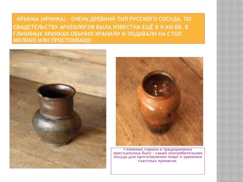 Глиняные горшки в традиционном крестьянском быту – самая употребительная посуда для приготовления пищи и хранения съестных припасов.