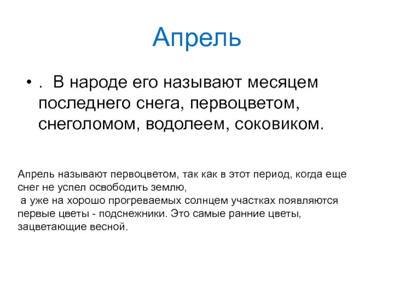 Апрель называют первоцветом, так как в этот период, когда еще снег не успел освободить землю,