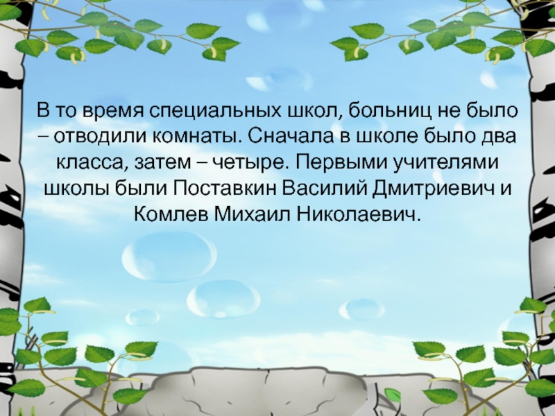 Слайд 13 В то время специальных школ, больниц не было – отводили комнаты.