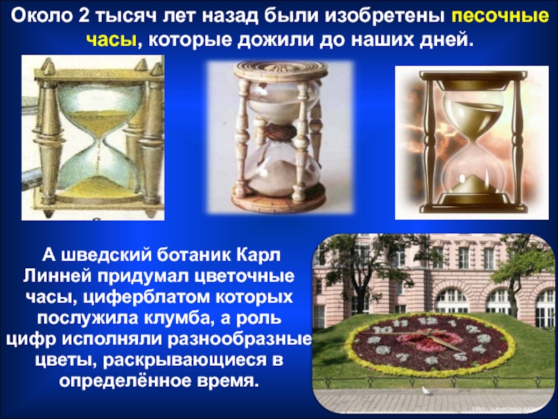 А шведский ботаник Карл Линней придумал цветочные часы, циферблатом которых послужила клумба, а роль