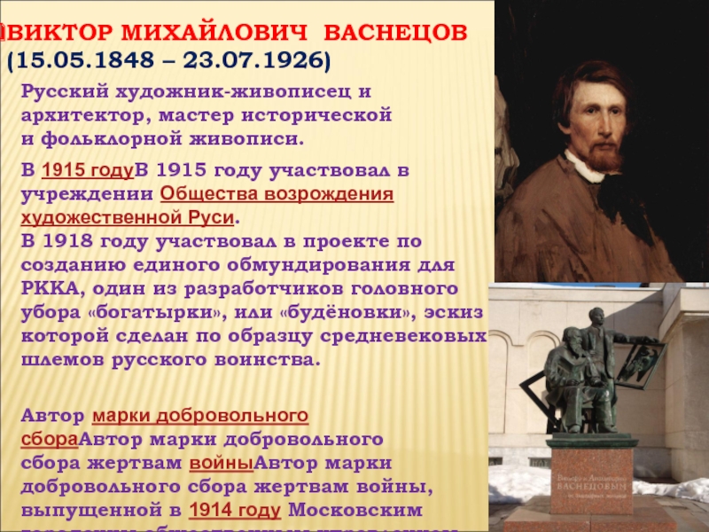 Автор марки добровольного сбораАвтор марки добровольного сбора жертвам войныАвтор марки добровольного сбора жертвам войны, выпущенной в 1914 году Московским городским общественным управлением.