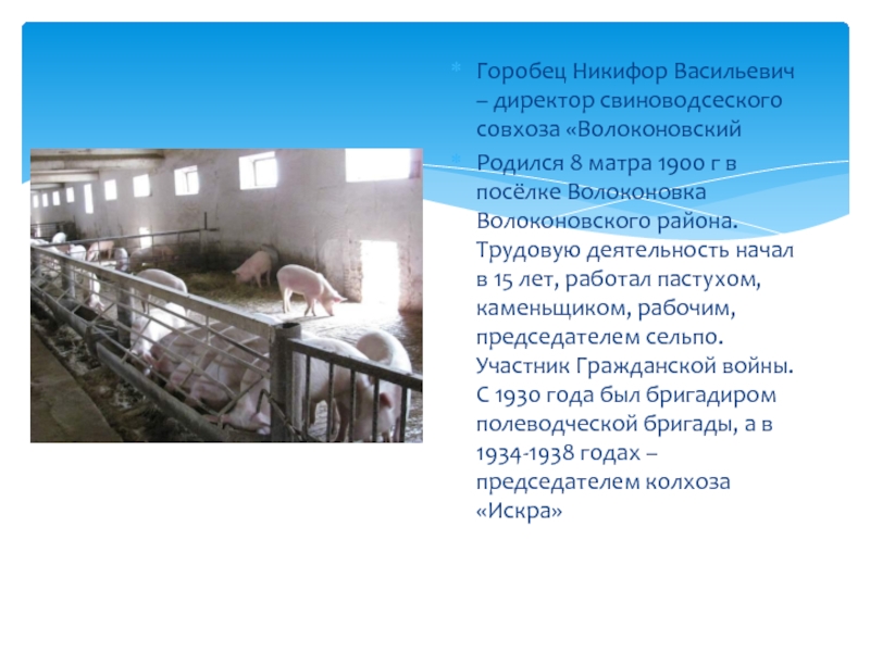Слайд 3Горобец Никифор Васильевич – директор свиноводсеского совхоза «Волоконовский