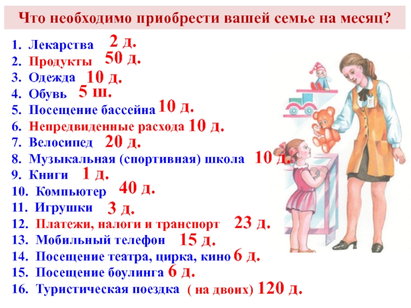 Что необходимо приобрести вашей семье на месяц?