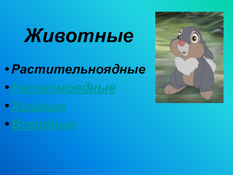 Животные РастительноядныеНасекомоядныеХищныеВсеядные