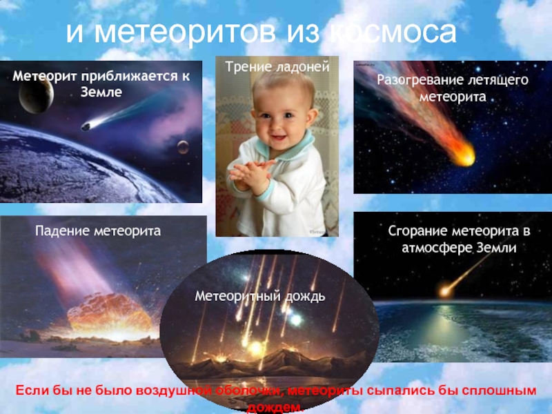 Если бы не было воздушной оболочки, метеориты сыпались бы сплошным дождем.
