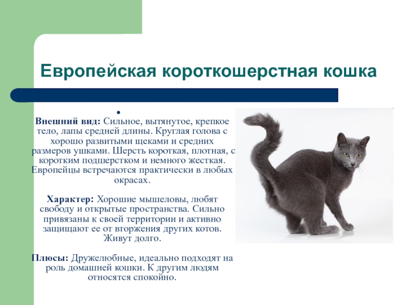 Слайд 4Европейская короткошерстная кошка