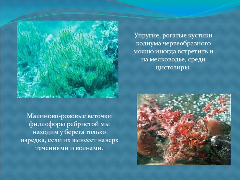 Малиново-розовые веточки филлофоры ребристой мы находим у берега только изредка, если их вынесет наверх течениями и волнами.