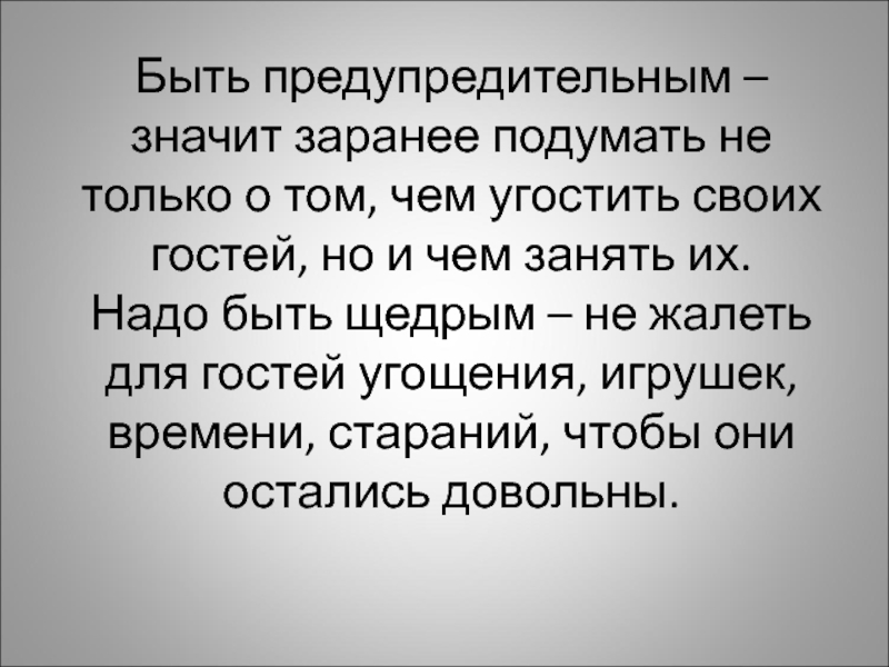 Слайд 9Быть предупредительным – значит заранее подумать не только о том, чем