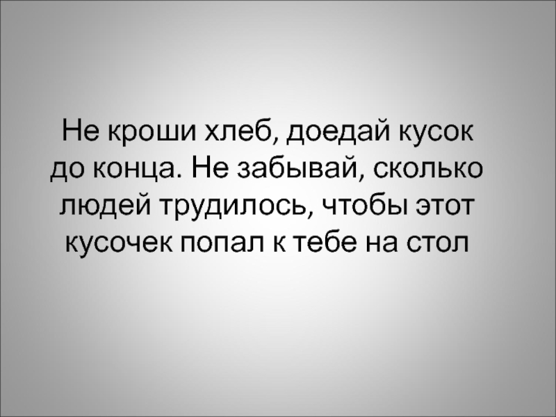 Слайд 14Не кроши хлеб, доедай кусок до конца. Не забывай, сколько людей