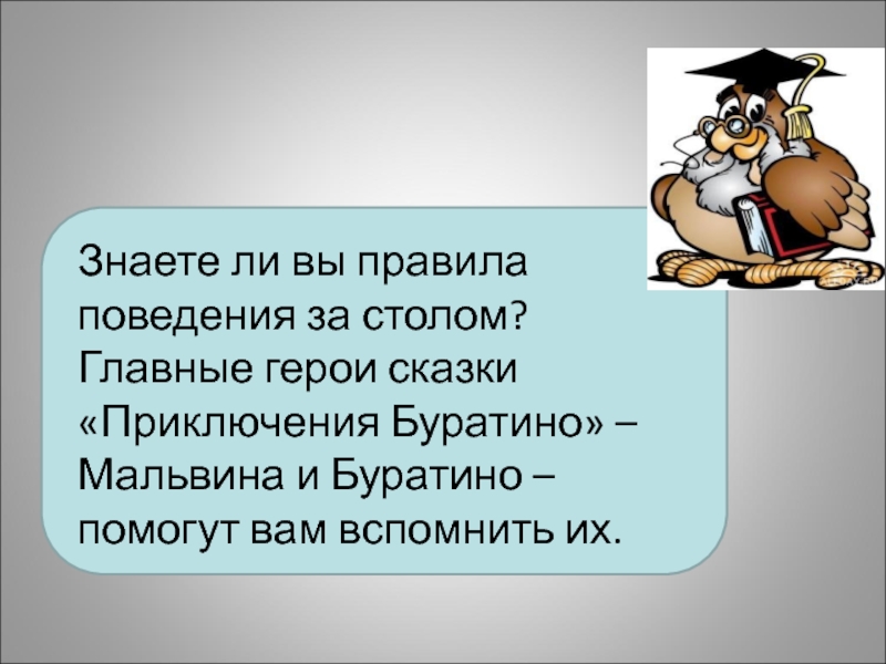Знаете ли вы правила поведения за столом? Главные герои сказки «Приключения