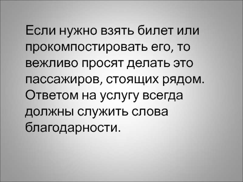 Слайд 21Если нужно взять билет или прокомпостировать его, то вежливо просят делать