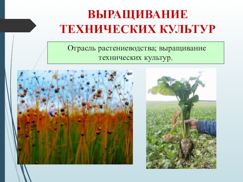 ВЫРАЩИВАНИЕ ТЕХНИЧЕСКИХ КУЛЬТУР Отрасль растениеводства; выращивание технических культур.