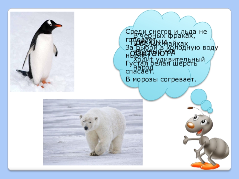 Узнаем, что на Земле есть очень холодные районы. Научимся находить их на глобусе и проводить примеры животных этих районов.