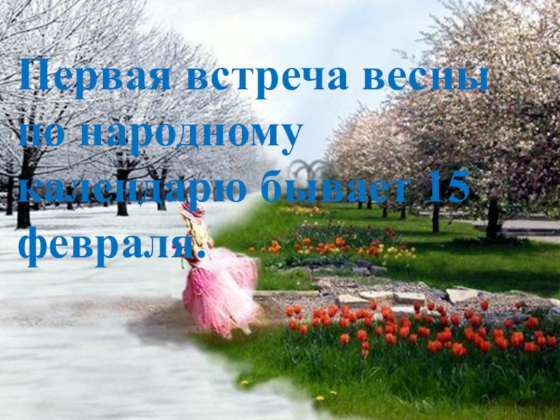 Слайд 2Первая встреча весны по народному календарю бывает 15 февраля.