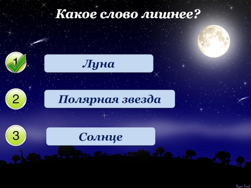 Какое слово лишнее?ЛунаПолярная звездаСолнце