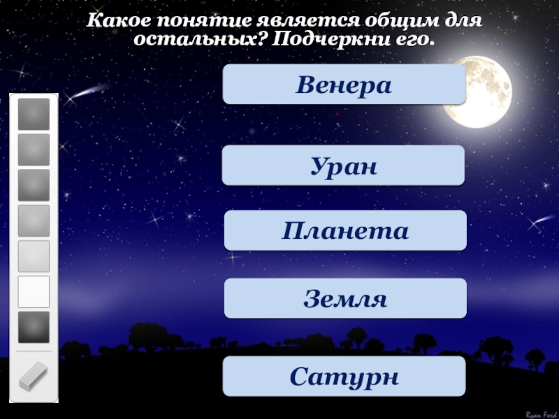 Какое понятие является общим для остальных? Подчеркни его.ВенераУранЗемля Сатурн Планета