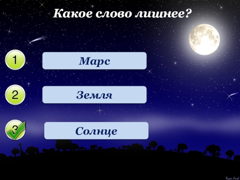 Какое слово лишнее?МарсЗемляСолнце