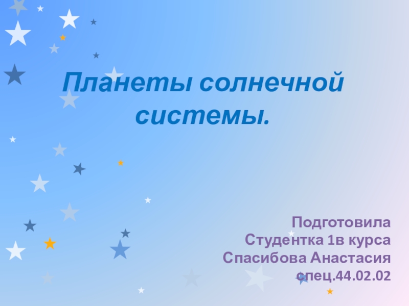 Планеты солнечной системы. ПодготовилаСтудентка 1в курса Спасибова Анастасияспец.44.02.02