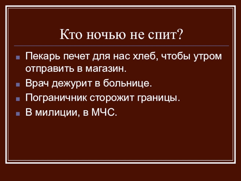 Люди спят, потому что наступила ночь?